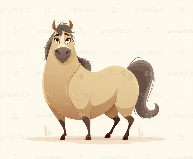 Иллюстрация мультфильма о веселой лошади с дружелюбным выражением лица и гладкой гривой