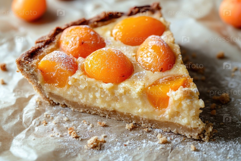 Кусок абрикосового торта с сливочной начинкой