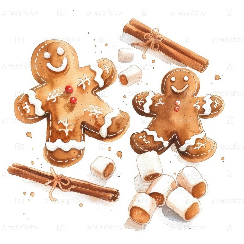 Акварельные печенье с корицей и зефиром