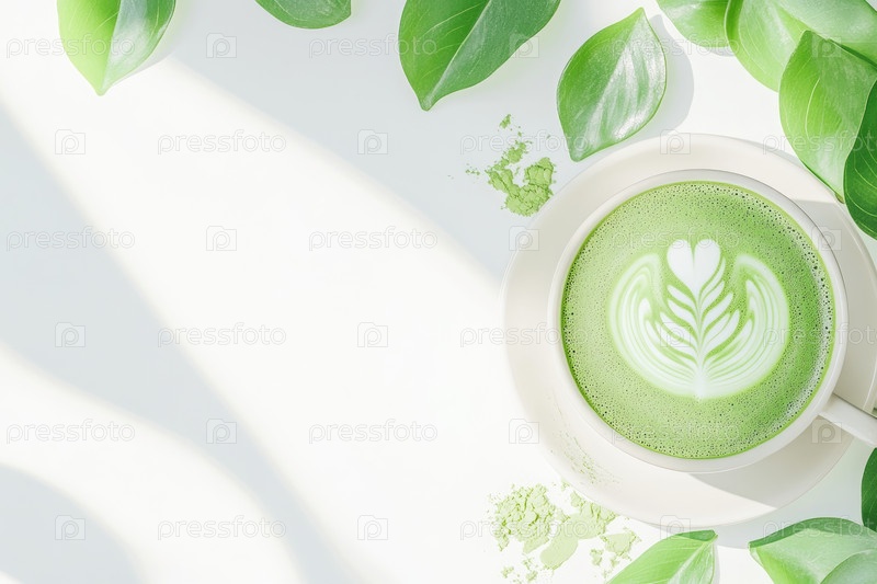 Минимализм matchalatte с листовым искусством