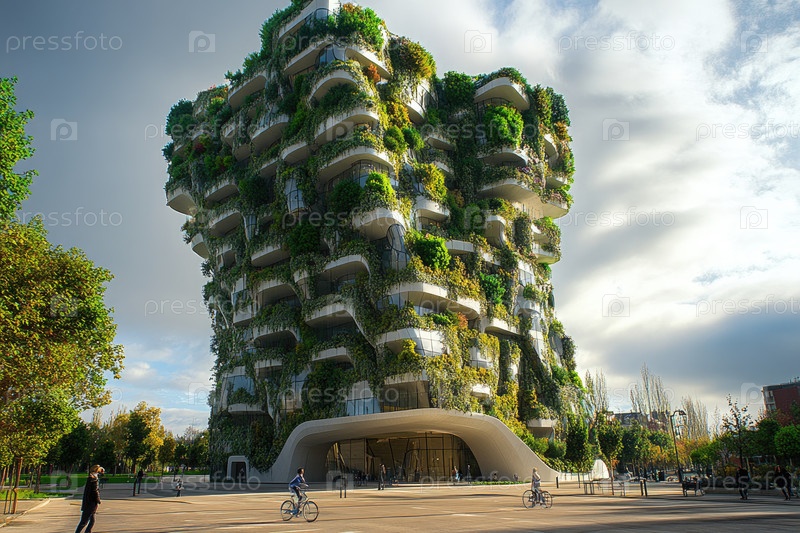 Современное экологическое здание с вертикальными садами