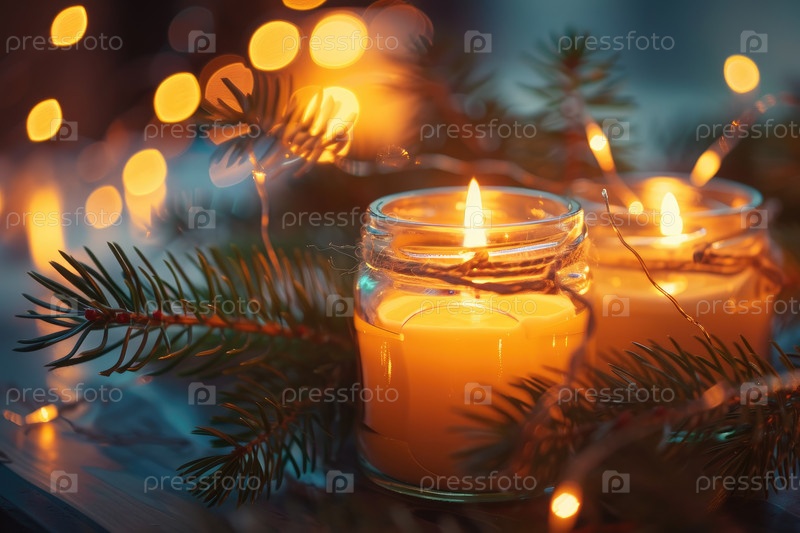 Теплые свечи светились в стеклянных банках, окруженные сосновыми ветвями и мягкими огнями боке