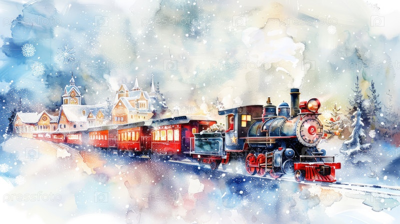 Винтажный паровоз, путешествующий по заснеженному пейзажу с очаровательной станцией зимой