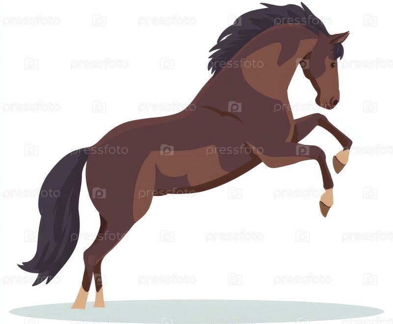 Коричневая лошадь изображена в спинном положении, демонстрируя свою силу и жизнеспособность на яркой иллюстрации, подчеркивая мускулистую физику и энергичную позицию лошади, создавая живую атмосферу