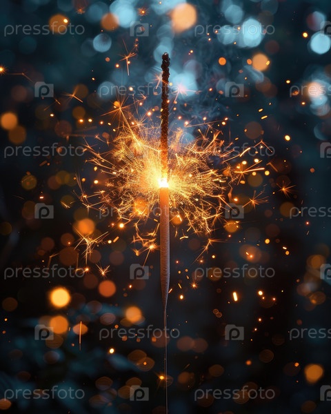 Sparkler воспламеняется яркими искрами и светящимися огнями боке в темной атмосфере