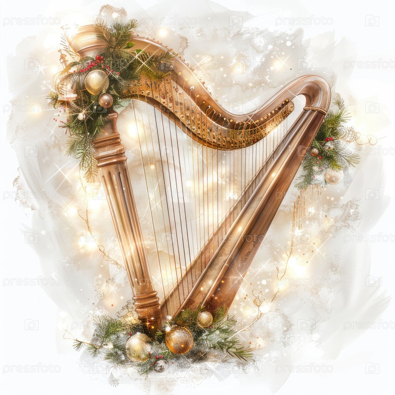 Золотая арфа украшена рождественскими декорациями