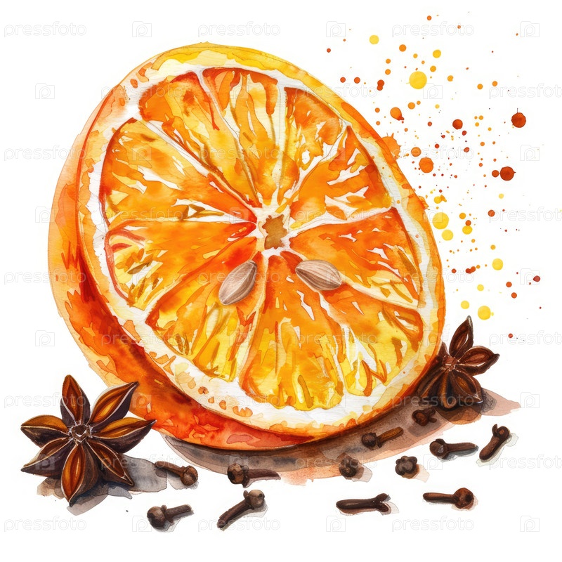 Акварельная иллюстрация куска апельсиновой специи на Рождество