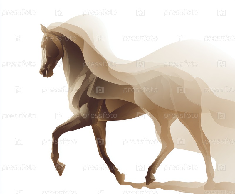Элегантный силуэт коричневого коня в движении с гладкими абстрактными формами и мягкими градиентами