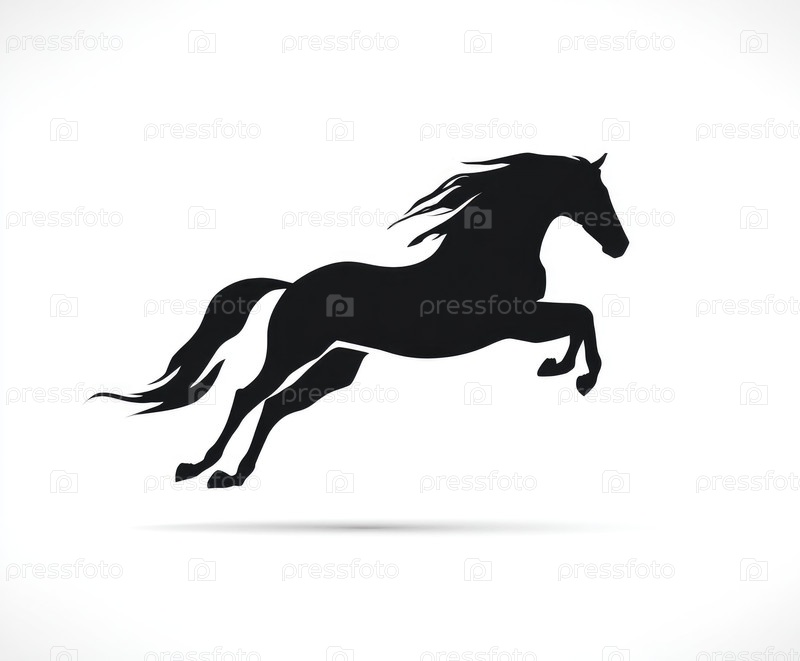Силуэт лошади, грациозно прыгающей по воздуху, захватывающий сущность скорости и силы, с текучей гривой и хвостом, подчеркивая красоту движений лошадей и легкоатлетизм