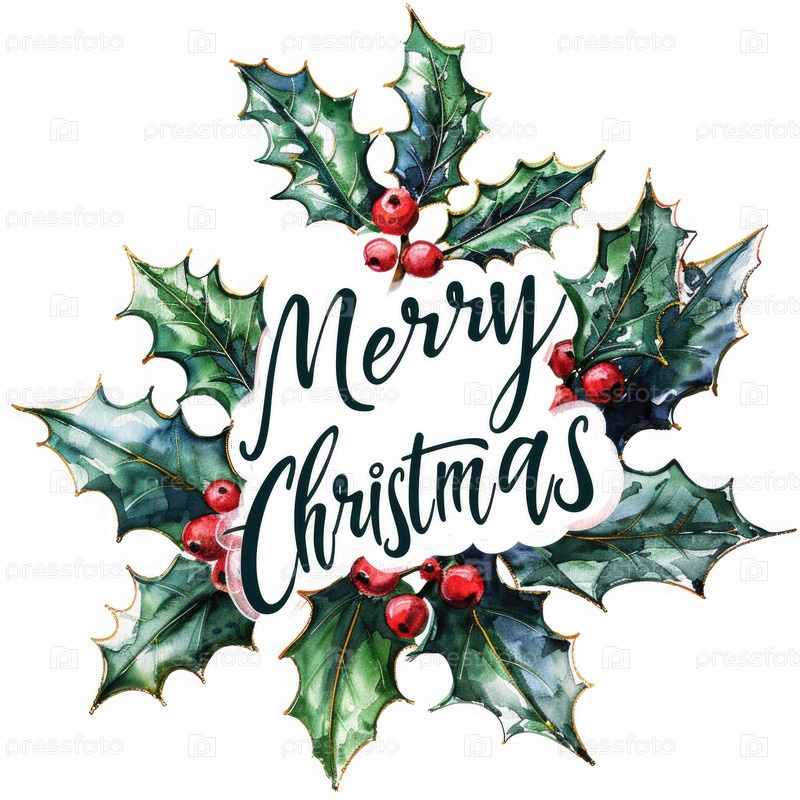 Водяной венок с обнаженными листьями и ягодами с веселым рождественским текстом.Идеально подходит для открыток, баннеров и сезонных дизайнов праздников