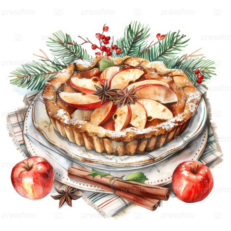 Праздничный яблочный пирог с корицей и рождественским украшением