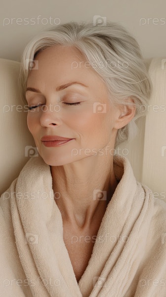 Элегантная пожилая женщина с серебристыми волосами расслабляется