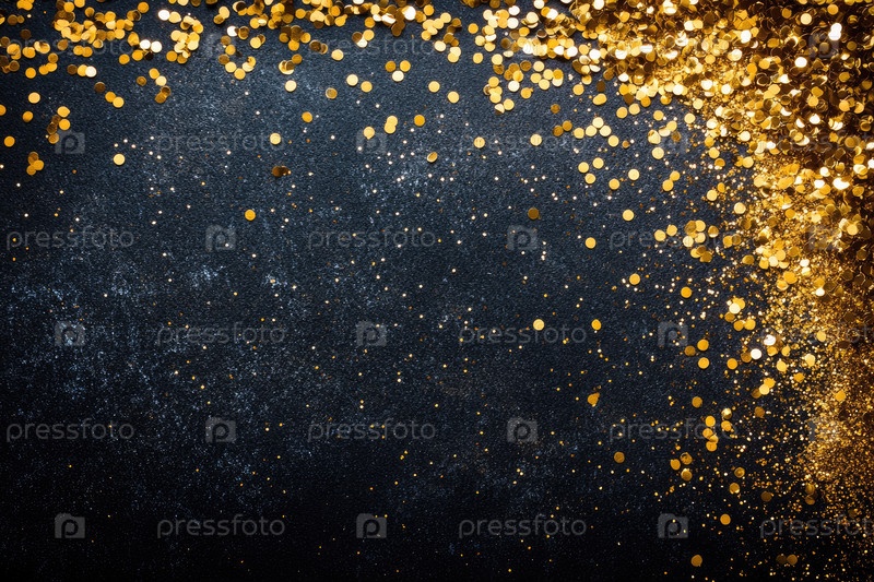 Золотые конфетти, разбросанные на темном фоне, создают праздничную атмосферу для торжеств