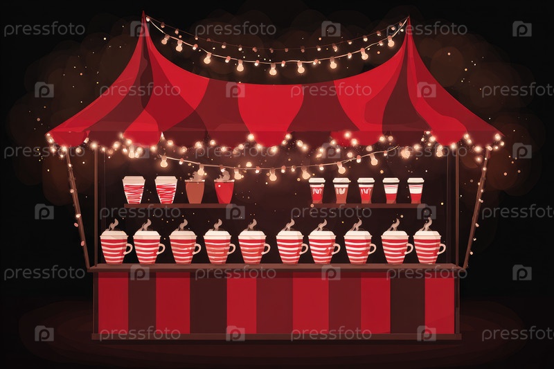 Красочные карнавальные напитки стоят с праздничными огнями и полосатыми кубками для радостных собраний