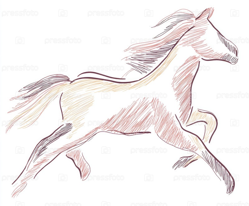 Иллюстрация бегущей лошади с динамическими линиями и гладкой гривой в движении