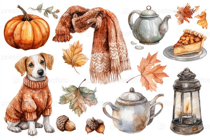 Осенний набор акварели с тыквенным собачьим шарфом чайный торт