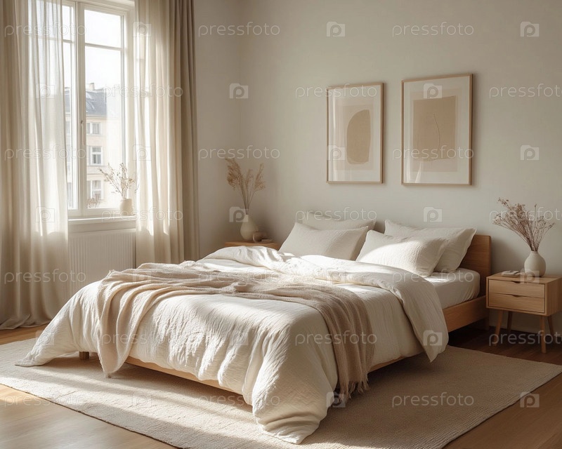 Современная спальня в бежевых тонах