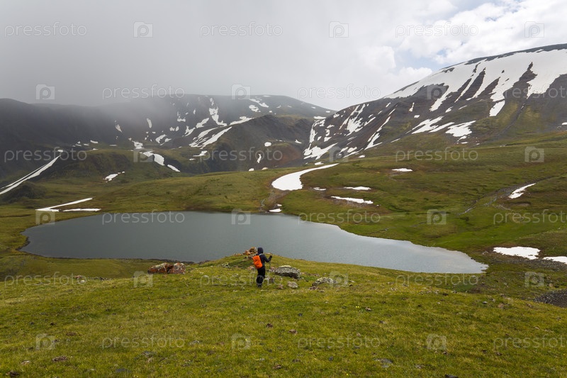 Красивый пейзаж озера в высокой горной долине