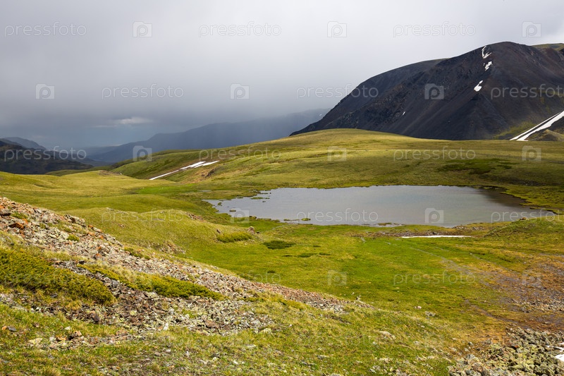 Красивый пейзаж озера в высокой горной долине