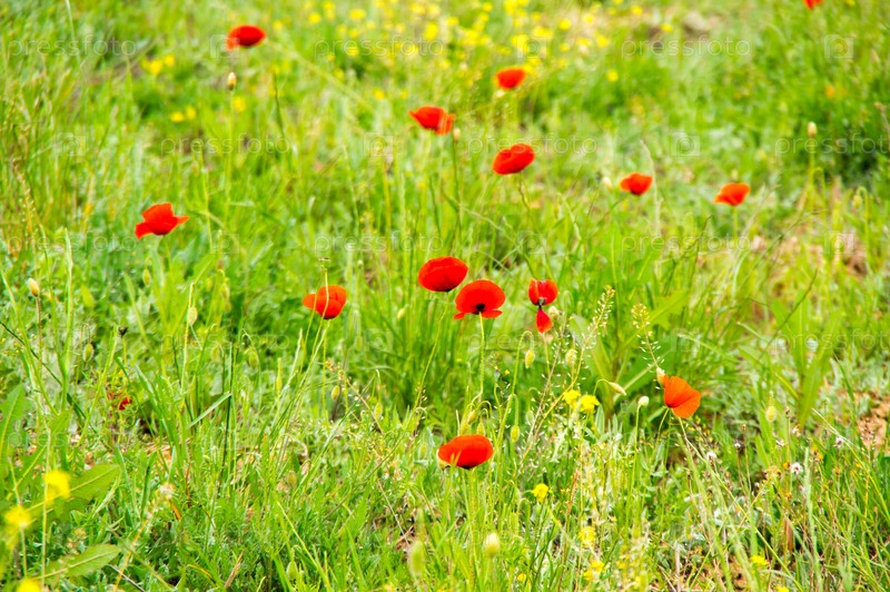 Поле маков, цветущих