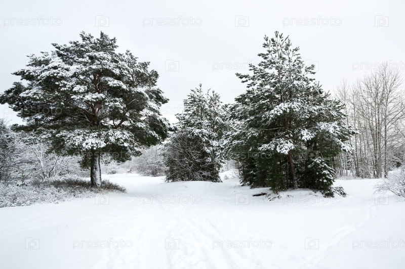 Деревья в зимнем лесу