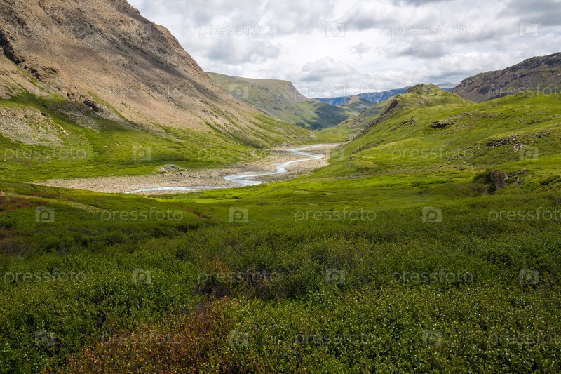 пейзаж извилистые реки, протекающие от гор в ярко-зеленую долину. природа, красивые ландшафты, идиллия, мир. красота дикой природы в горах Алтая