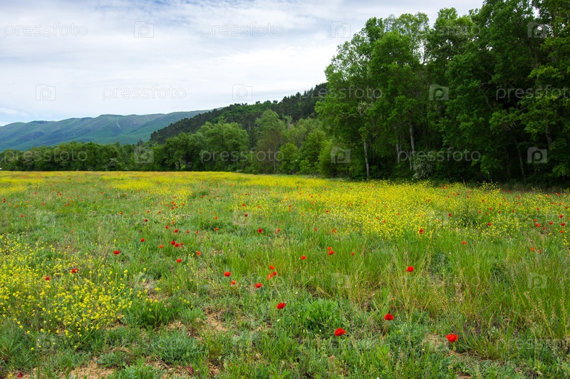 Поле маков, цветущих