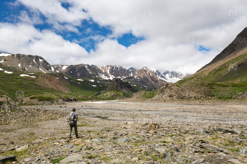 Красивые пейзажи скалистой долины реки в летний пасмурный день
