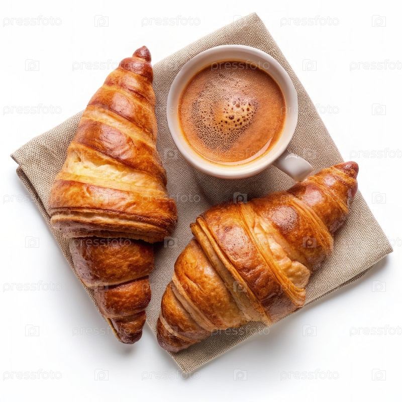 Два кроассанта и чашка кофе на салфетке