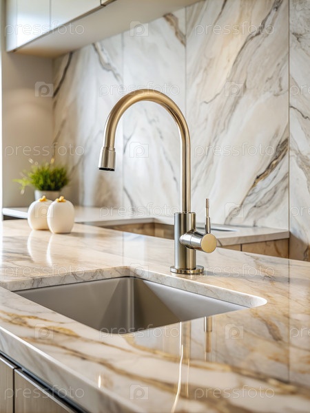 Современная кухня с мраморными столешницами и вонью