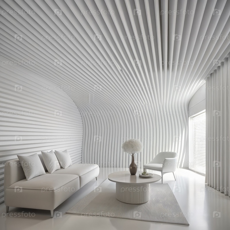Современная гостиная с диваном и столом, генерирующая ИИ