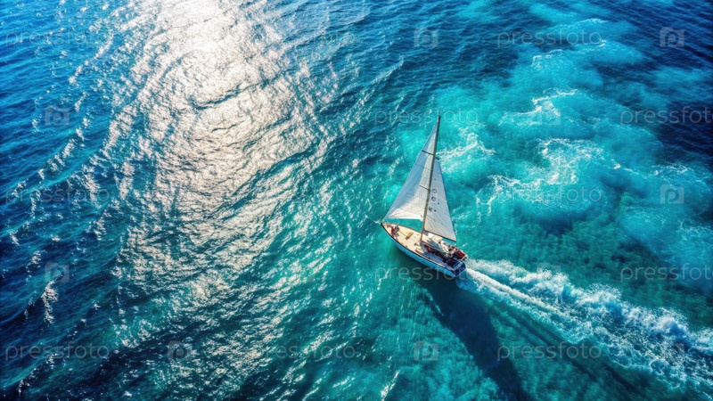 Парусник плывет по спокойным голубым водам в солнечный день