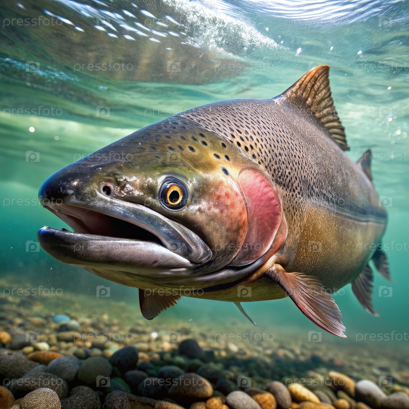 Лосось чинук плавает в реке, генерируя искусственный интеллект