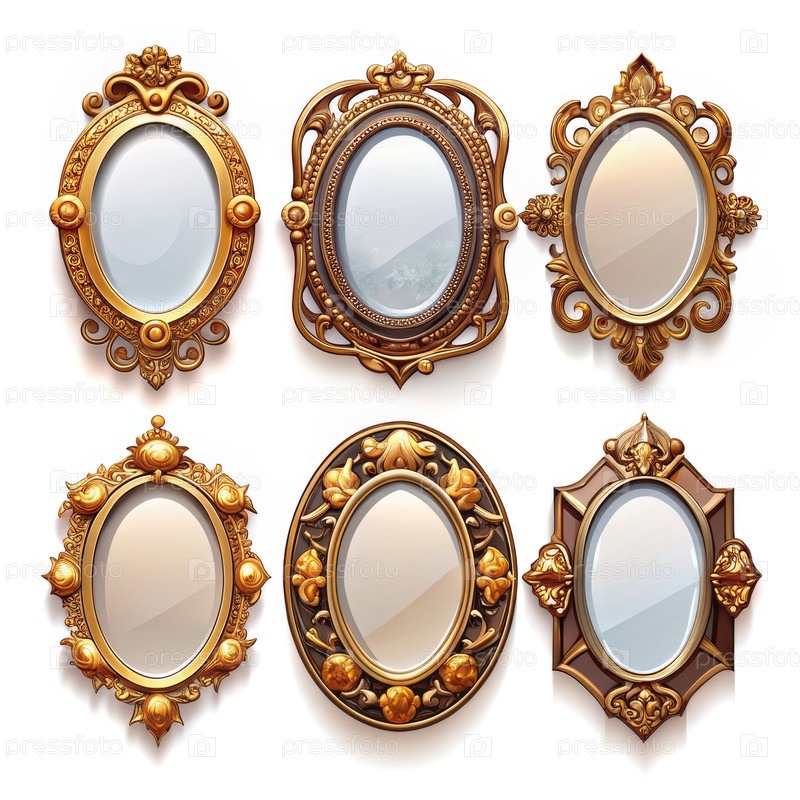 Золото украшенные зеркала изолированы на белом фоне, генерируя шесть AI