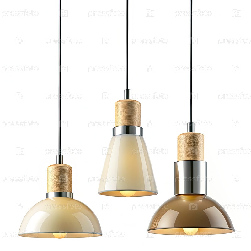 Набор из трех минималистических подвесных ламп с деревянными и металлическими акцентами