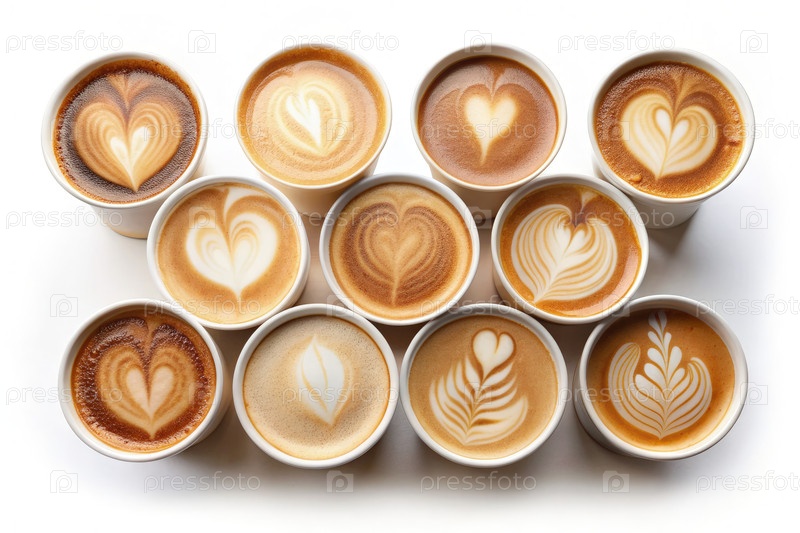 Коллекция бумажных чашек для кофе, разработанная Latte Art. Generating AI