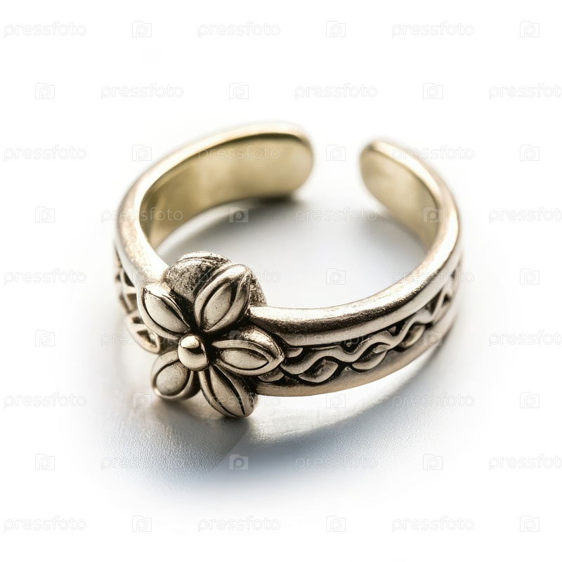 Серебряное кольцо с цветочным дизайном на белом фоне