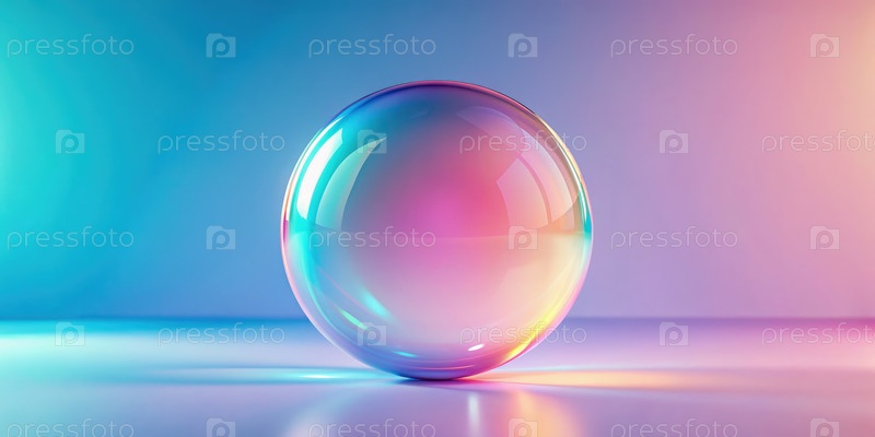 Прозрачная стеклянная сфера на фоне мягкого пастельного градиента