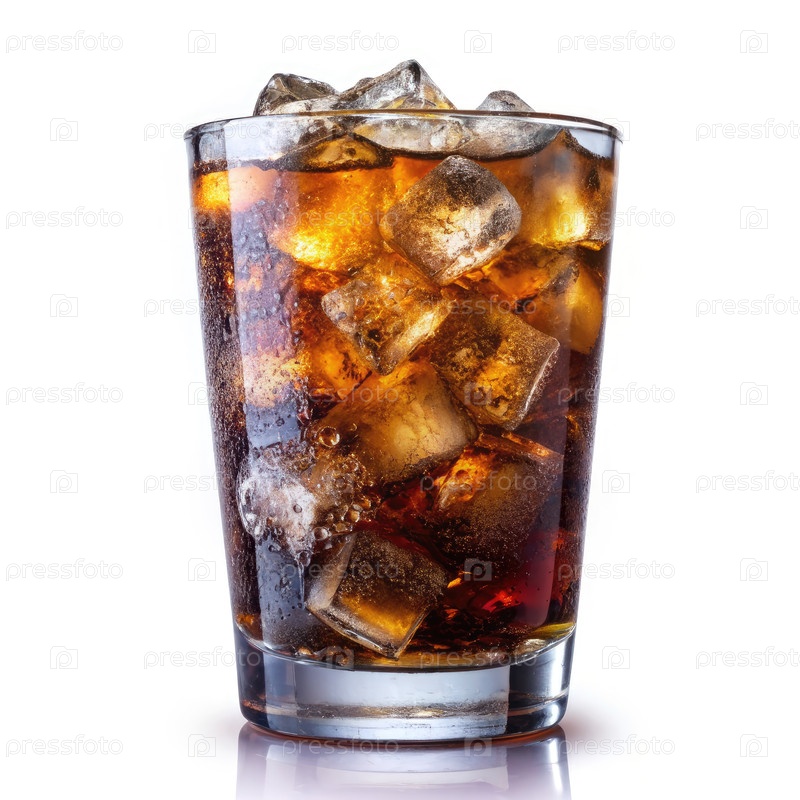 Стекло кока-колы с кубиками льда на белом фоне Generating AI
