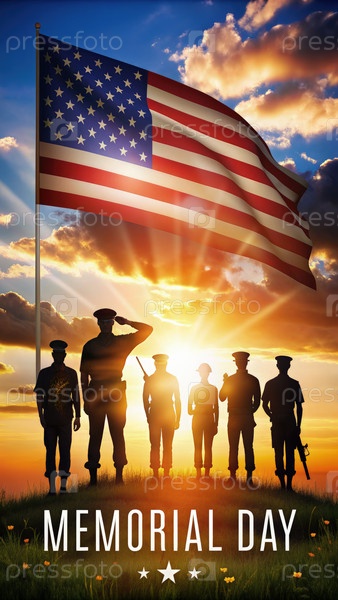 Группа солдат, стоящих перед американским флагом