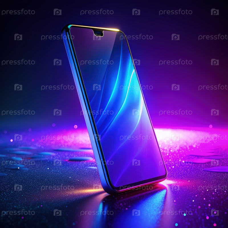 Фиолетовые и синие телефоны на столе, генерирующие ИИ