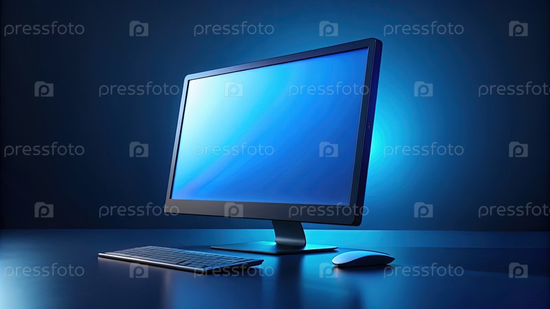Компьютерный монитор на рабочем столе, генерирующий ИИ