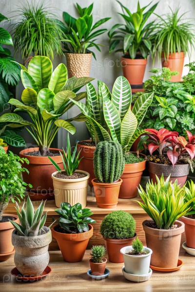 Стол с обильными горшковыми растениями. генерируя ИИ