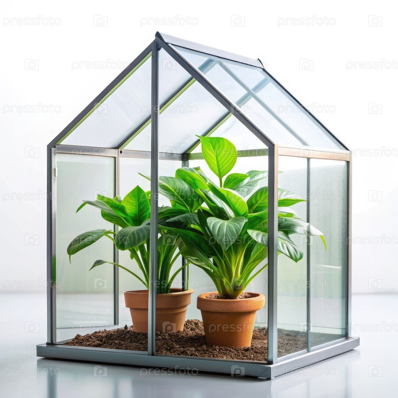 Стеклянный дом с растениями внутри, генерирующий ИИ