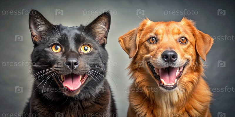 Два кота и собака смотрят в камеру, генерируя ИИ
