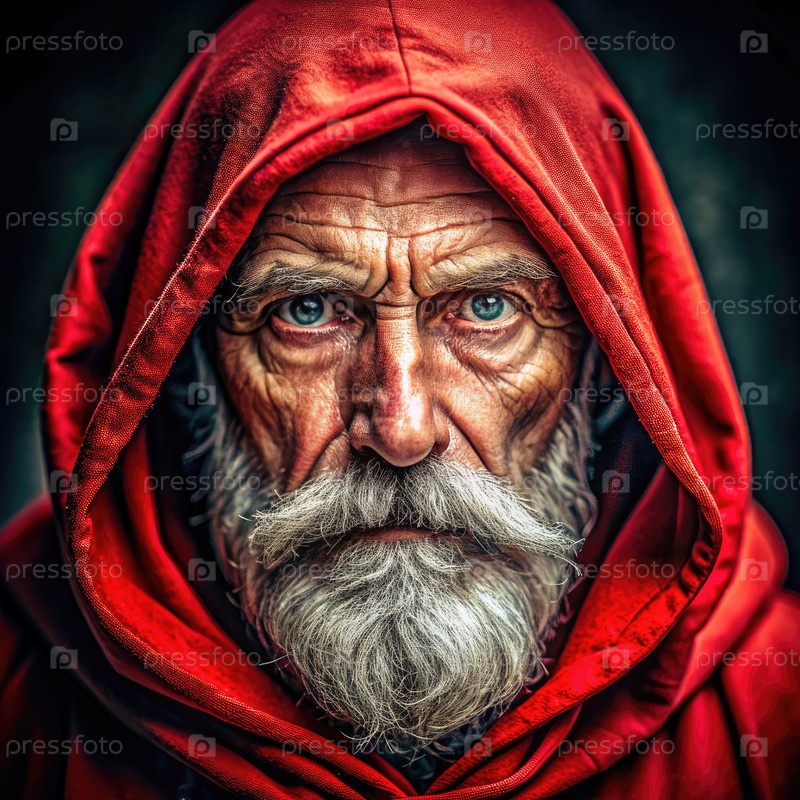 Пожилой мужчина в красной кабачке с белой бородой генерирует ИИ