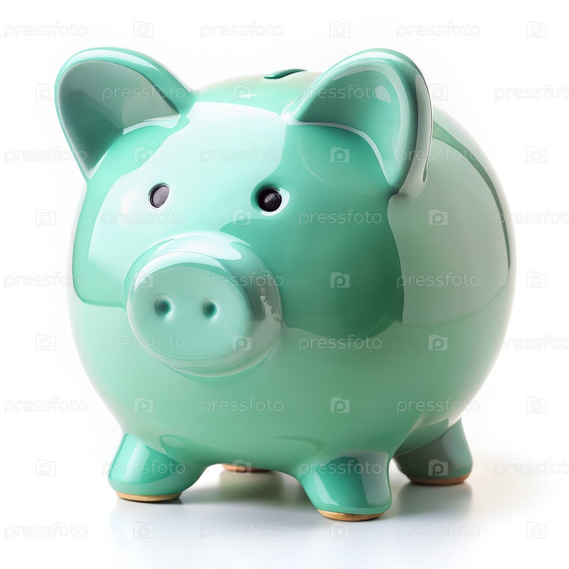 Зеленый банк на белом столе, генерирующий ИИ