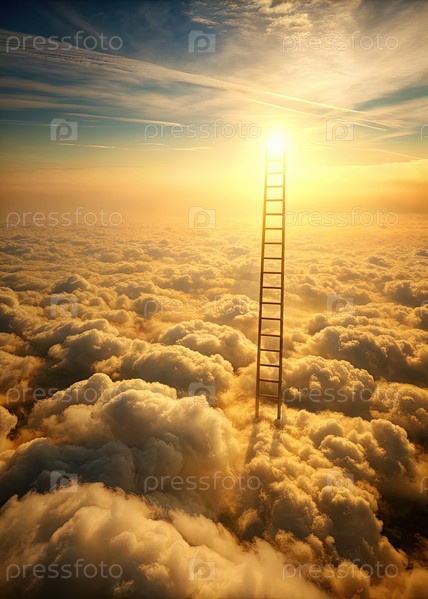 Лестница, поднимающаяся через облака вместе с солнцем