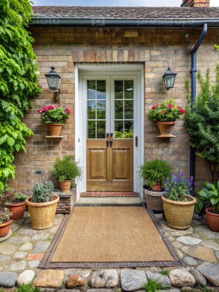 Загородный дом Терраса с двойными дверями и матком для приветствия