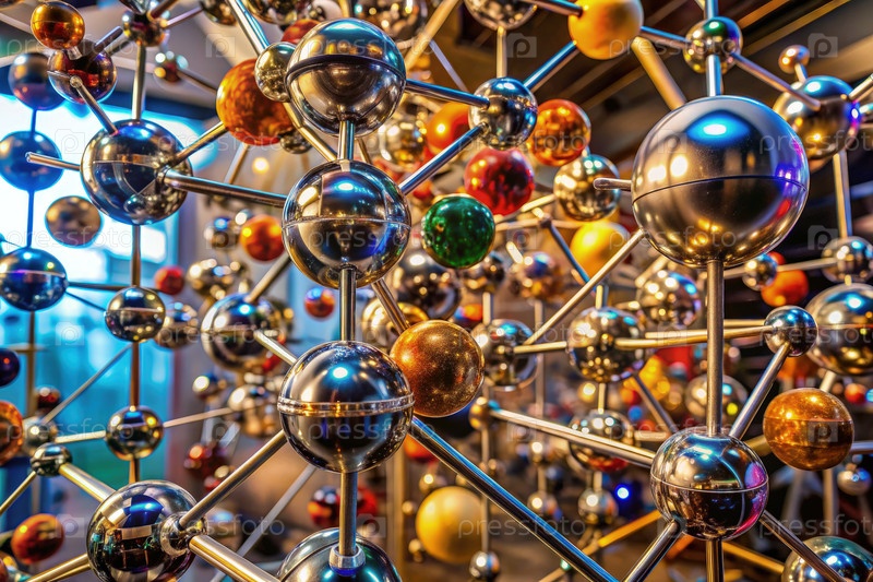 Внимательный взгляд на современную кинетическую скульптуру, построенную из металлических сфер и стволов